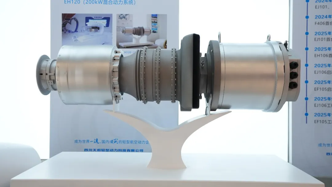 EH106M是一款60千瓦级混合动力系统,具有重量轻、结构紧凑、成本低的特点,最大功率80kW,耗油率0.65kg/(kW·h),寿命300h,发动机干质量35kg,主要用于大型无人机空中供电吊舱、200—1000公斤eVTOL的增程器。